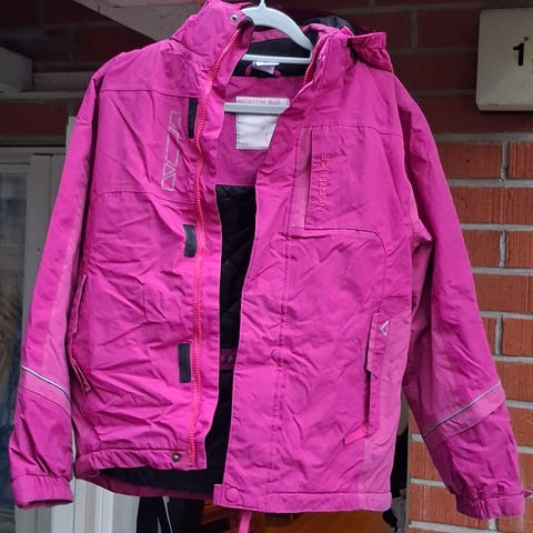 Myydään North Icen tyttöjen vettä hylkivä takki sekä takkiin kuuluvat tuulihousut, molemmat koossa 150cm.
