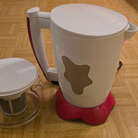 Myydään hyväkuntoinen Exido-merkkinen vedenkeitin/teepannu, jossa on lämpötilansäätö (45°C, 70°C, 90°C). Sopii erinomaisesti teen hauduttamiseen, pressopannuna tai lämpimän veden pitämiseen valmiina. Käytetty vain vähän ja toimii moitteettomasti.