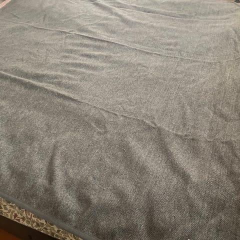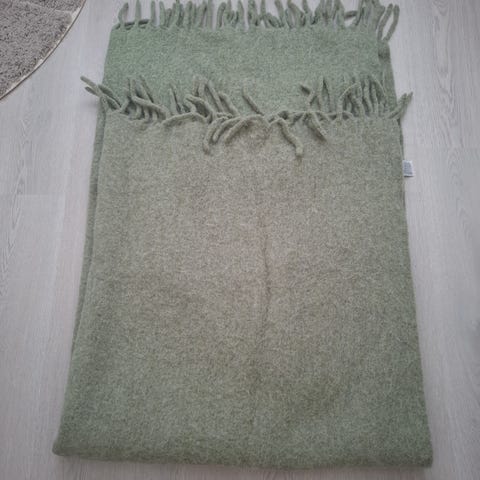 Paksu luonnonvalkoinen, lämmin villasekoitehuopa, villaa 85%.