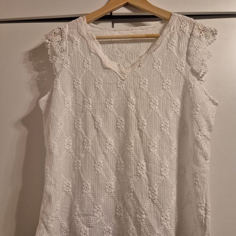 Valkoinen toppi tekstillä