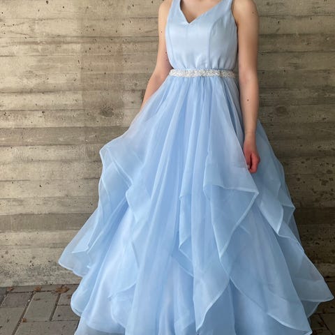 Myydään kerran käytetty vanhojentanssimekko vannehameella. Ostettu morsius- ja juhlapukuliikkeestä Zazabellasta