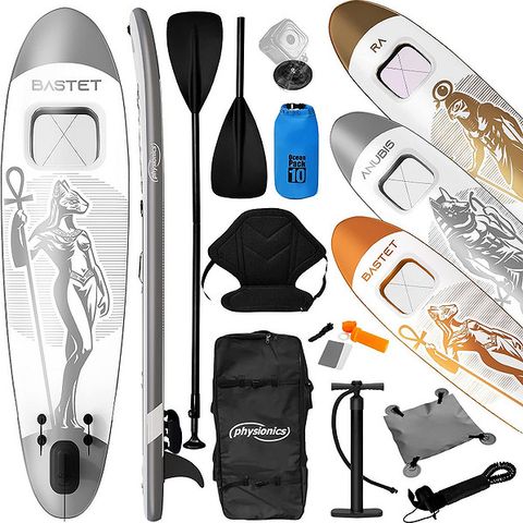 Pakkaus sisältää: SUP-laudan, melan, nilkkaremmin, pumpun, kantolaukun sekä vesitiiviin säilytyspussin ja korjaussarjan