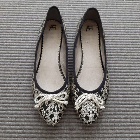 Vain muutamasti sisäkäytössä olleet ballerinat koko 38. Nahkaa. Pehmeät jalassa . Kuminauhavenyke kengän reunassa. Virheettömät.