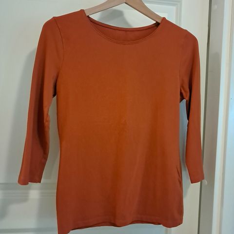 Naisten 3/4 hihainen tumman ruskea trikoopaita. Laadukas ja värinsä säilyttänyt.
