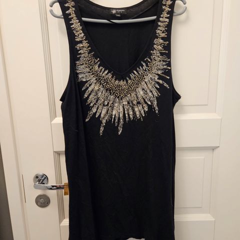 Noin 36 kokonen Juhlapaita / toppi, kimalteleva kangas. Koiratalous, nouto Vantaan Ruskeasannasta.