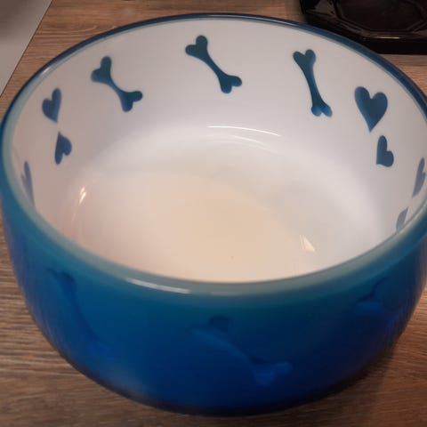 Muovinen vähän käytetty pienen koirankuppi.