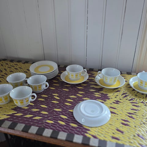 Kahvikuppeja 3kpl, aluslautasia 4 kpl, 2 isompaa lautasta. Nouto Espoo tai postilla. Voin myydä osissa, jolloin hinta korkeampi.