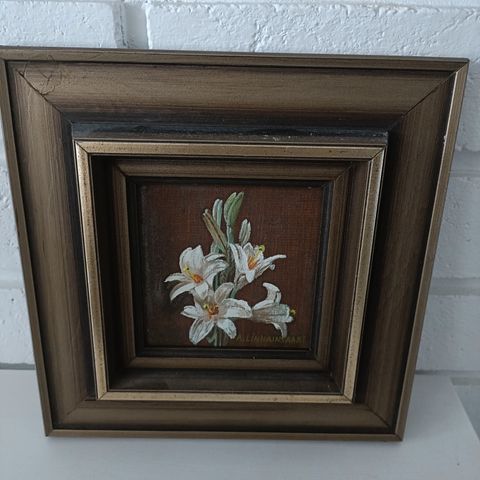 Myydään kuvan pieni taulu, Suopursu. Koko n. 21 x 21 cm.