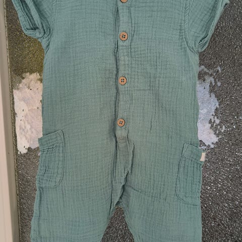 Kesäinen hihaton jumpsuit. Muuten hyvä kunto, mutta lahkeissa pientä tahraa. En ole koittanut poistaa. Ehkä aurinko haalistaisi pois?