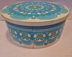 ira denmark anita wangel turkoosi vaaleansininen peltipurkki peltipurkit peltirasia rasiat säilytys purkki purnukka metallirasia metallipurkki ompelurasia keksipurkki retro vintage keksirasia