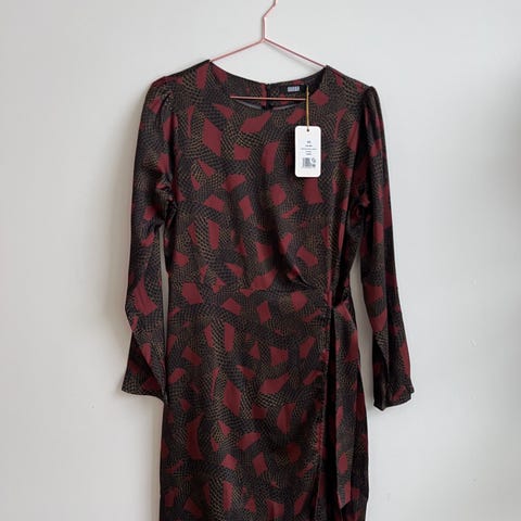Uhana Eternity Dress Short -mekko Serpent-kuosissa, väri kaunis punaruskea musta/kulta käärmekuviolla. Takana piilovetoketju.