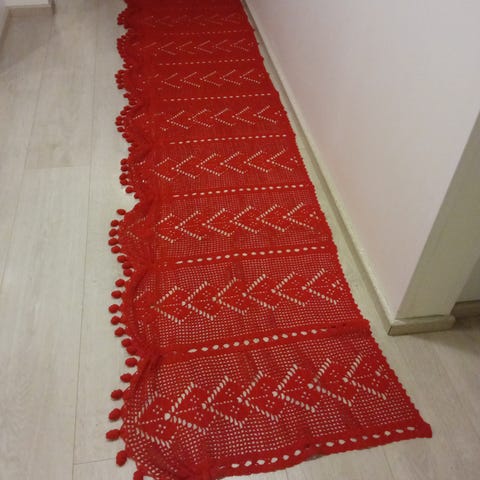 Läpikuultavaa päärynäkuvioista kangasta, ommeltu kapaksi, sauma keskellä