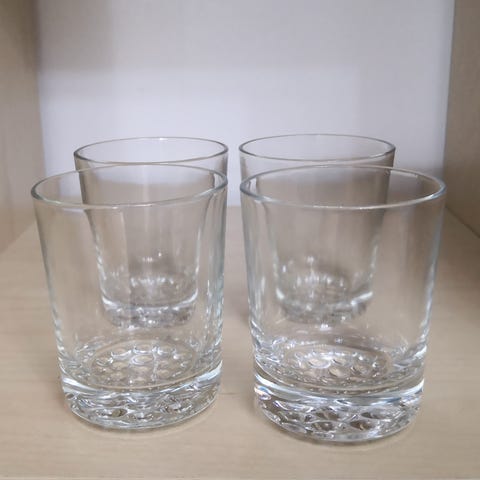 4 kpl Iittalan puolukka laseja, yhdessä lasissa pieni valuvirhe yläosassa kts' kuva.