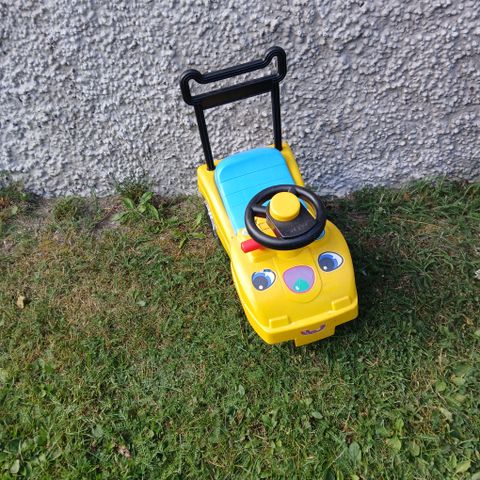 Hieno harmaan sävyinen auto. Meillä ollut olohuoneen koristeena, sekä lasten käytössä. Pyörät liikkuu, ratti toimii.