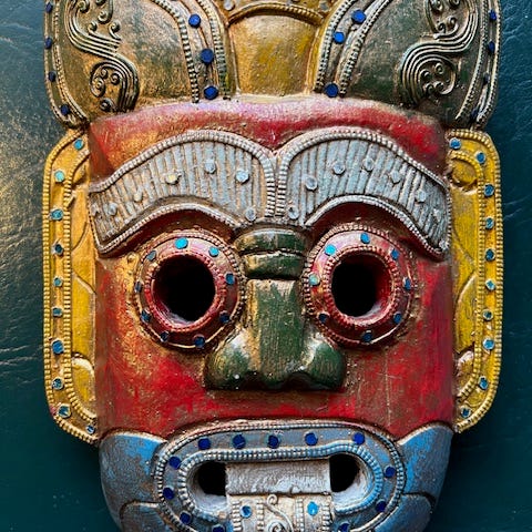 Seinälle ripustettava naamari, puuta. Nouto Välivainiolta tai saattaa omien menojen mukana kulkeutua sovittaessa.