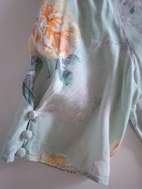 Pistacchio coloured floral mid-lenght dress with buttons on sleeves and zipper on side.