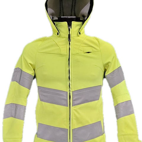 Naisten malli. Fluoresoiva, vinoheijastimet. Yksivärinen. Hengittävä, tuulenpitävä ja vettähylkivä. Sisäpuoli fleeceä. Vetoketjukiinnitys ja sisäpuolinen tuulilista. Irrotettava vuorellinen huppu, säädettävä kiristysnyöri. Korkea kaulus. Povitaskut. Pidennetty takaosa. D-lenkki. Ergonomisesti muotoillut hihat mahdollistavat suuren liikkumisenvapauden. Vetoketjulliset etutaskut. Resori piilotettu tuulilistassa ja tarranauhakiinnitys hihansuissa.