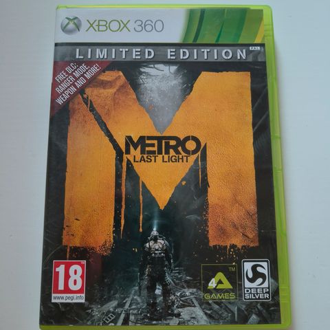 Metro Last Light Limited Edition XBOX 360. Erittäin hyvä kunto. Levyssä ei naarmuja. Sisältää myös ohjekirjat!