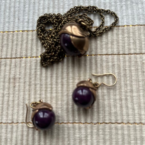 Pronssiset Kalevalan korun korvakorut ja kaulakoru.