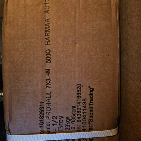 PVC- autotalli. Halkaisija 8 m, korkeus 4m. Autotalli tarkoitettu kahdelle autolle, mutta mahtuu myös moottoripyörä/mönkijä, elektroniset nosto-ovet 2 kpl.
