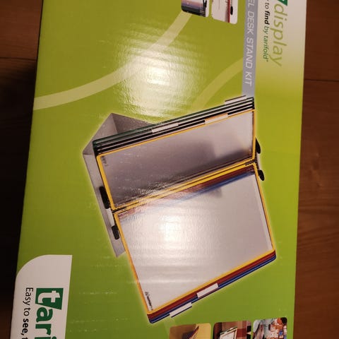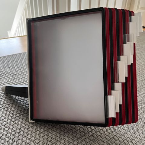 Myydään Tarifold A4 pikahakuteline pöydälle. Telineessä jalusta, taustalevy taskuille sekä A4-taskut 30kpl (6kpl jokaista väriä). Jalusta ja selkämys metallia. Nouto Hattulasta tai ostajalle matkahuoltokulut.
