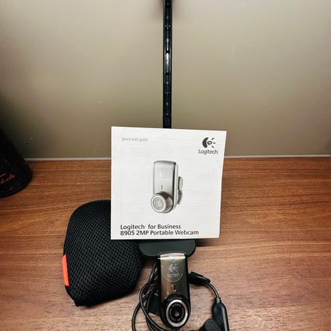 Pöytämikrofoni ja Logitech kamera tietokoneelle
