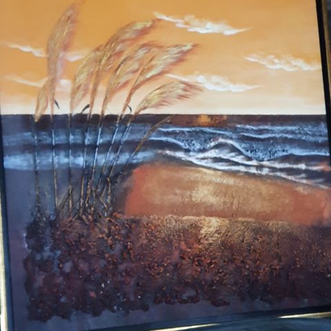 Nätti ruka-aiheinen öljyvärimaalaus, Vesa Junttilan käsialaa. Noin 60 cm korkea maalaus.