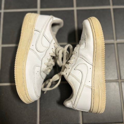 Washed and clean condition. Unisex kids sneakers. One of the end of the shoelace is frayed. Both shoes have wear and tear around the inner colar, as seen in the pictures. Size 29.5 unisex.