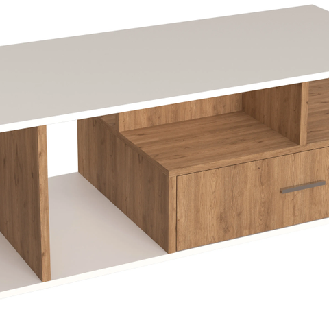 VCM:n kahvipöytä "Silus" sopii lähes jokaiseen olohuoneeseen sen modernin, mutta samalla ajattoman muotoilunsa ansiosta. Viisi lokeroa ja suuri laatikko tarjoavat runsaasti säilytystilaa koriste-esineille tai TV-tarvikkeille. Neljä käytännöllistä pyörää mahdollistavat olohuoneen pöydän joustavan siirtelyn.