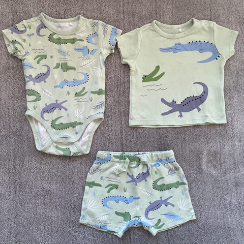 Vähälle käytölle jäännyt kesävaatesetti. Koossa 74. 2 kietaisubodya sekä 2 shortsit