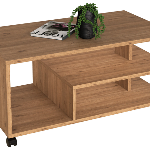 VCM:n kahvipöytä "Ralus" sopii lähes jokaiseen olohuoneeseen sen modernin, mutta samalla ajattoman muotoilunsa ansiosta. Avoimen konseptin ansiosta siinä on runsaasti tilaa koriste-esineille tai TV-tarvikkeille. Neljä käytännöllistä pyörää mahdollistavat olohuoneen pöydän joustavan siirtämisen.