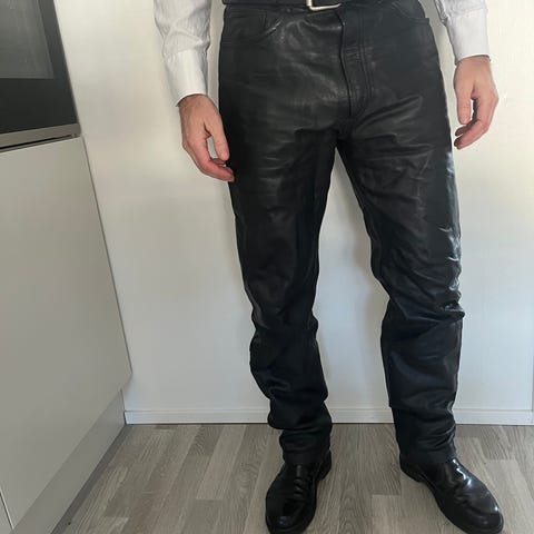 Nahkaiset Akito- merkin moottoripyörähousut.