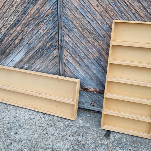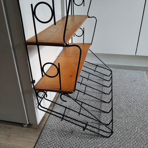 Loistokuntoinen antiikkimallinen hyllykkö lautasille , koriste-esineille tai lehdille.