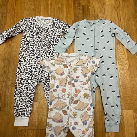 Kaksi ohutta trikoota olevaa yöhaalaria yhteensä 5e. Molemmissa nepparikiinnitys kauluksesta lahkeeseen.