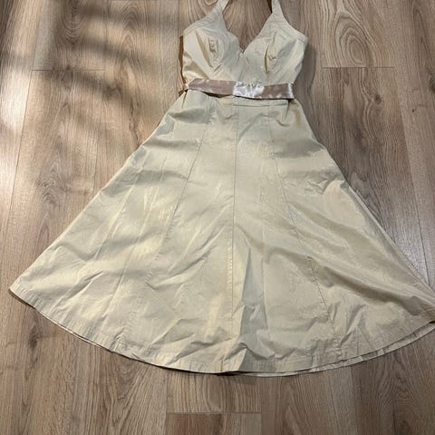 Uusi Vilan juhlamekko koko S. Selässä muutaman millin pituinen jälki (ollut pakosti jo ostaessa mutta syynääsin nyt extra-tarkasti) josta vielä erikseen kuva.
