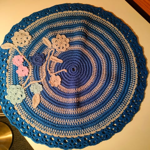 Pyöreä käsin virkattu uusi matto lankat maksaneet jo 50e..iso töinen matto.