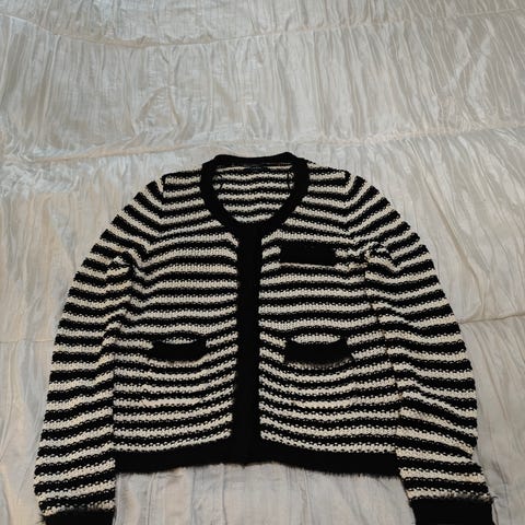 Harmaa, on tasainen väriltään (kuva vääristää) ohut neule. M- kokoa, mutta vastaa pienempää kokoa.