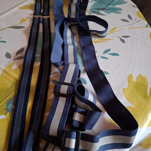 Myydään henkselit. Kuminauhaa jotka kylläkin vähän venyneet. Näppärä vaihtaa kuminauhat.