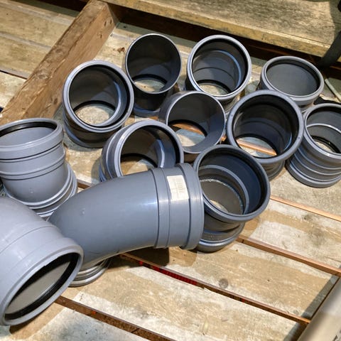 Laatikollinen erilaisia haarakappaleita ja kulmia 110mm viemäriputkiin ja sadevesijärjestelmään. Kappaleet ovat uusia ja käyttämättömiä. Hinta koko laatikko 35e. Käteismaksu. Vain nouto.