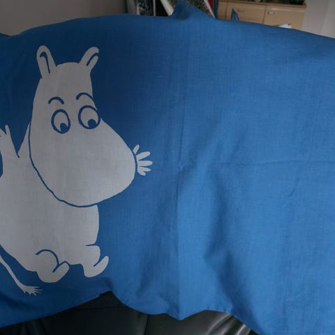Tosi hyvässä kunnossa Moomin tyynyliina. Koko 60 x 50 Hinta 6e.(tyttären tyttö oli muutama kertaa yökylässä) meillä ei ole eläimiä eikä tupakan haju.