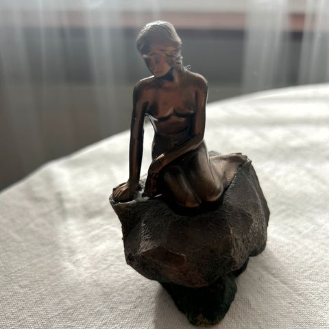 Tanskasta matkamuisto Pieni merenneito. Pronssinen kivellä istuva neito. Nouto Järvenpäästä tai Tikkurilasta/ärräpussi +6.50€.