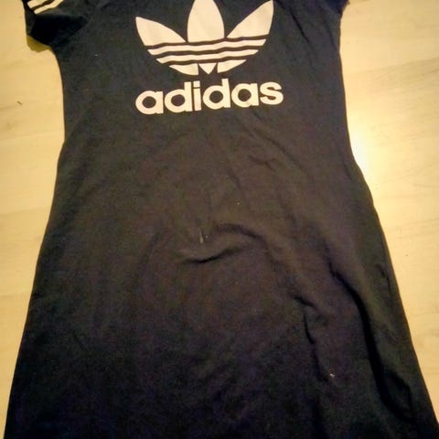 Adidaksen musta, trikoinen t-paitamekko. Vähälle käytölle jäänyt. Sijainti Herralassa, mutta kulkeutuu omien menojen mukaan Lahteen ja matkalla ainakin Salpakankaalle.