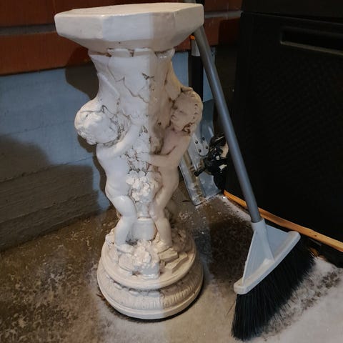 "Ikä vähän painaa ", pienellä laitolla asialliset. Korkeus n.35 cm, leveys n.45 cm.