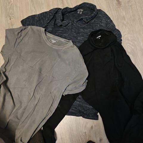 Miesten vaatesetti kokoa M-XL, suurin osa kokoa L ja sen kokoisella olleet samaan aikaan käytössä. Setti sisältää 5 t-paitaa, farkkushortsit, neulepaidan ja 9kpl kauluspaitoja ja 2kpl päähineitä. Merkkeinä mm Dresssman. Hajusteeton, savuton ja eläimetön talous, mmm, nouto Piispanristiltä Kaarinasta tai postikulut ostajalle ja maksu mieluiten Mobilepay tai käteisenä tasaraha noudettaessa, toridiili käy