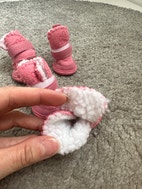 2kpl pienen koiran talvikenkiä / tossuja. Kahta kokoa; 1 ja 2. Tarkemmat mitat kommenteissa. Tossut uusia. 7€/kpl.