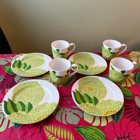 6kpl leipälautasia ja 6kpl mukeja