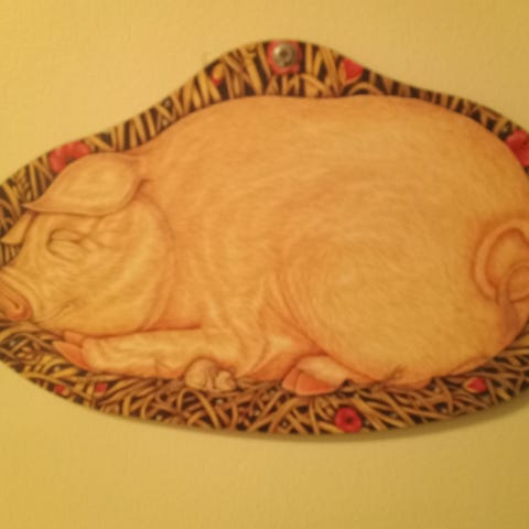 Punainen posliinipossu. Korkeus 9cm, pituus 11cm.