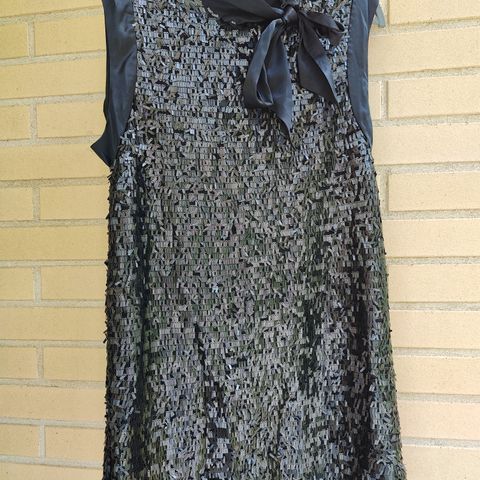 Rils merkkinen kaunis mekko, M tai 38-40, musta-viininpuna-valkoinen. Ihana jonkun verran joustava materiaali. Kauniit 3/4 hihat. Vyötärö/mahan kohdalla kaunis ja armelias rypytys. Ihana pitää kun ei purista päällä. Hyvä kunto.