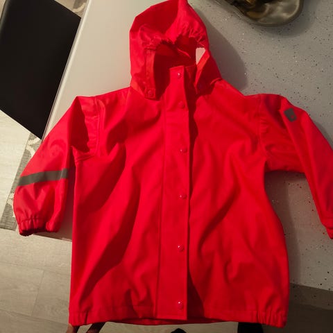 Hyväkuntoinen, siisti ja ehjä sadetakki. Koko 104 mutta vastaa ennemminkin kokoa 116.