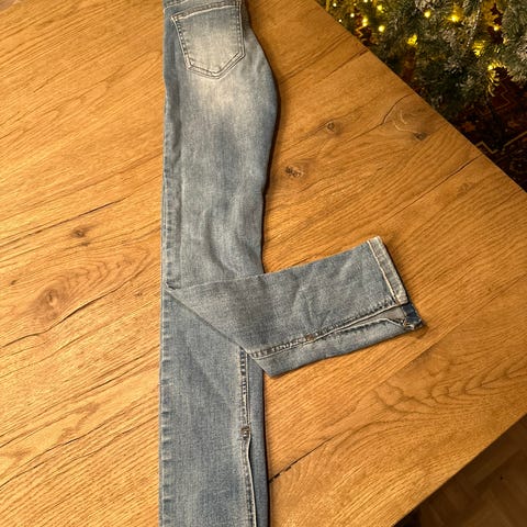 Tyttöjen farkut, missä valmiiksi reiät polvien kohdassa. Kunto hyvä.